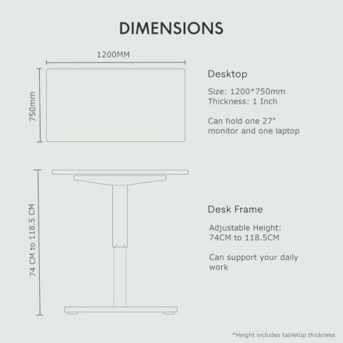QUIET, STRONG & DURABLE – Comes with silent two stage motor with load bearing capacity of 80 KG, frame built using steel for long life, table-top is made of high quality engineered wood. Height Adjustable from 74 CM to 118.5 CM