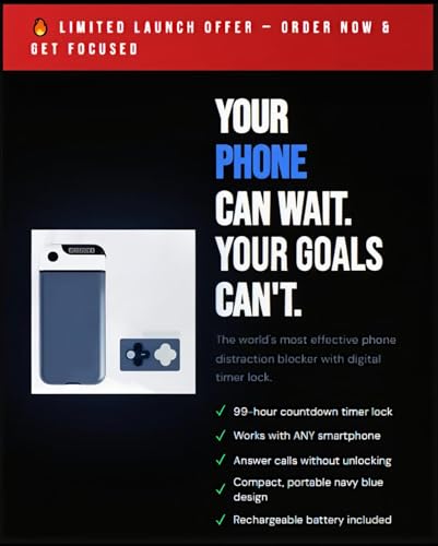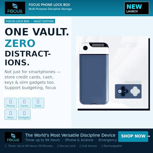 🔒 CONTROL SCREEN TIME & BUILD SELF-DISCIPLINE The FOCUS Phone Lock Box with Timer helps reduce mobile addiction and unnecessary screen time. Ideal as a digital detox device, smartphone locker, and productivity tool for students, professionals, and families.