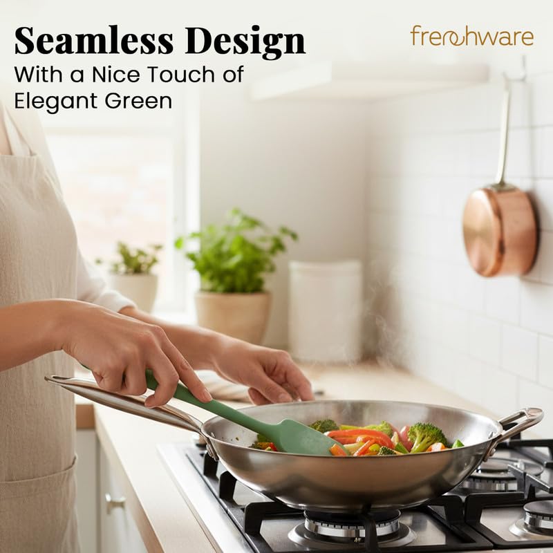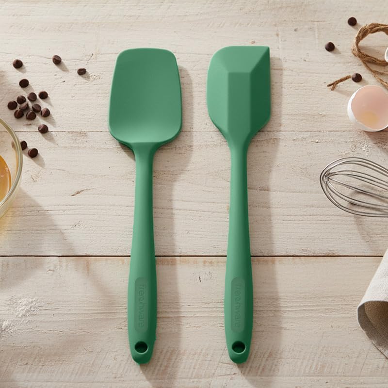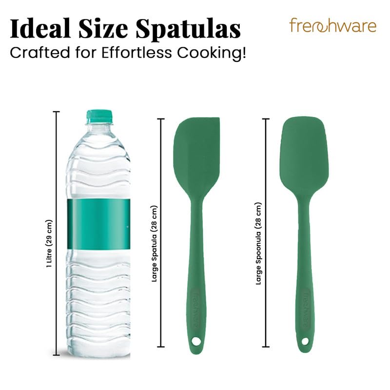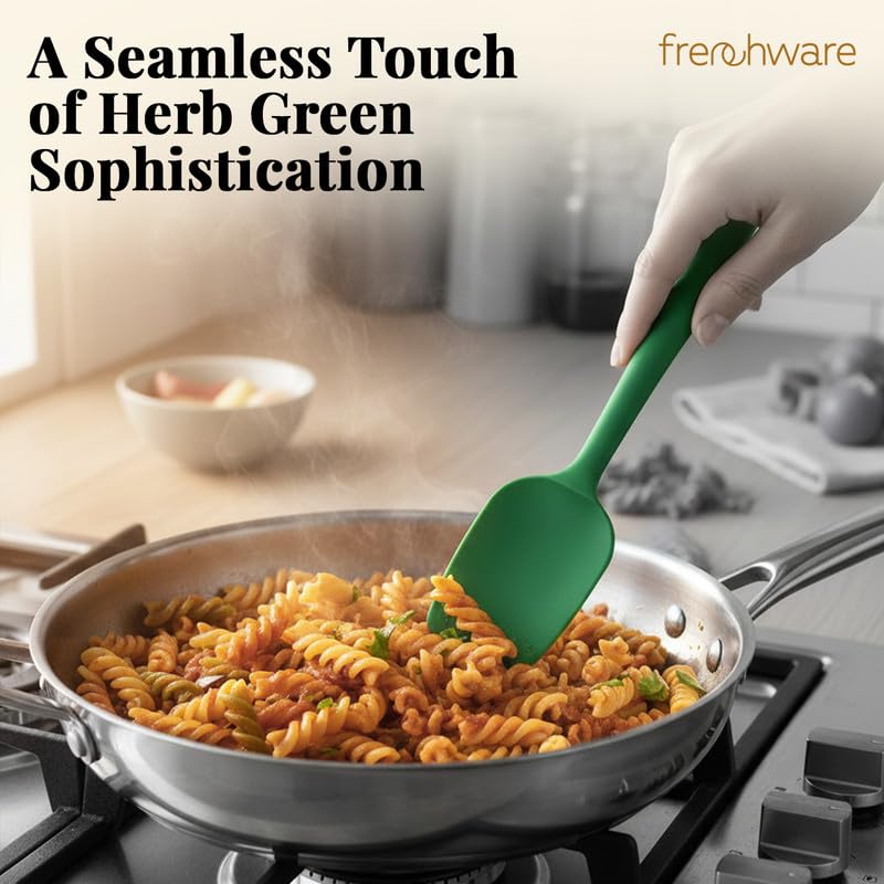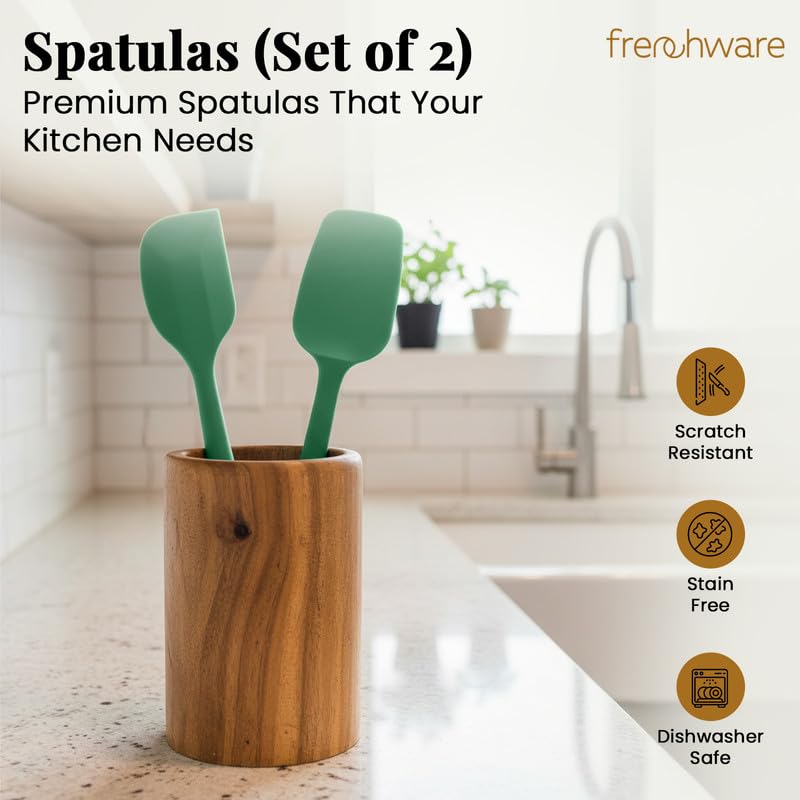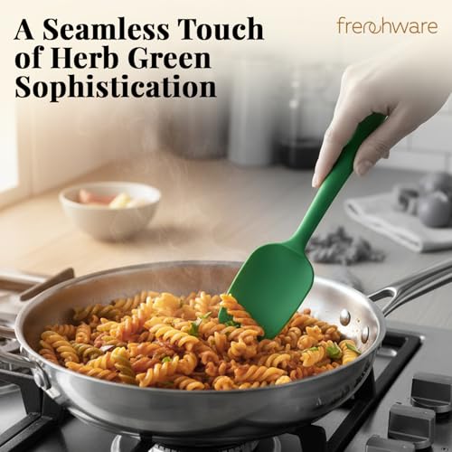 Frenchware Set of 2 Non-Stick Premium Silicone Spatula & Spoonula for Cooking, Baking & Mixing, Heat-Resistant up to 230°C, Food-Grade & BPA-Free, Dishwasher Safe, Ergonomic Handle, Herb Green