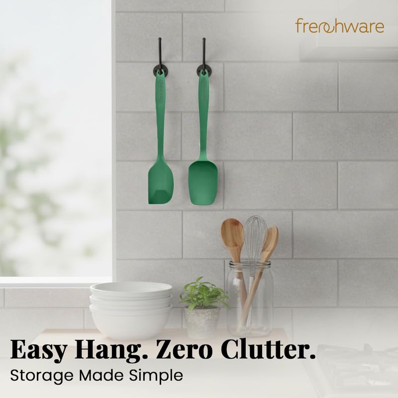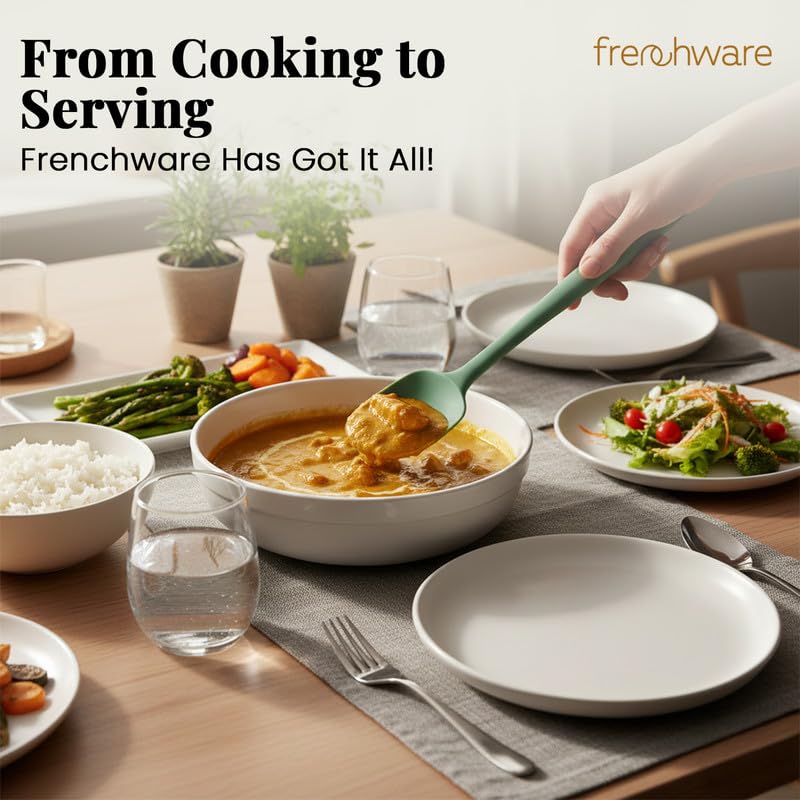 “Make everyday cooking easy and fun with FrenchWare Silicone Spatula Set! FrenchWare spatula spoon set with stainless steel core is a must-have for any kitchen. It is used to perform everyday cooking chores such as roasting, sauteing, baking, etc. These spatulas and ladles are used to cook food with great ease without breaking a sweat. It boasts outstanding craftsmanship with super-premium 100% food-grade silicone that promises durability and resists heat up to 230°C. Crafted with the perfect weight and balance, the collection is a pleasure to hold and use. The spoon and spatula set for non-stick cookware are easy to clean and maintain as it is dishwasher-safe. Moreover, its elegant design makes it a perfect addition to your modern kitchen. Key Features: Food-grade Construction: FrenchWare spatulas and spoons are designed with 100% food-grade, BPA-Free and FDA Approved silicone material which is safe for every type of food One-piece Seamless Design: Seamless design ensures that no food will get trapped, hence, easy cleaning Heat-Resistance up to 230°C: These reliable heat-resistant kitchen tools will perform excellently in high temperatures up to 230°C Dishwasher Safe: The cutlery set for kitchen is easy-to-clean and maintain as it is dishwasher safe. You can just pop them in the dishwasher and have peace of mind Stain/Odor-Resistant: The spoon set is stain and odor-resistant. It will not discolor, warp, melt, or chip the coating of the spatula, hence, will never affect the flavor of your food Anti-slip Ergonomic Handle: The handles of the utensils are non-slip and sturdy, and convenient for use. Designed with a hanging hole for easy hanging and storage Non-Scratch: Made of BPA-free silicone material, the kitchen utensil is soft enough so it will not scratch your expensive or premium cookware