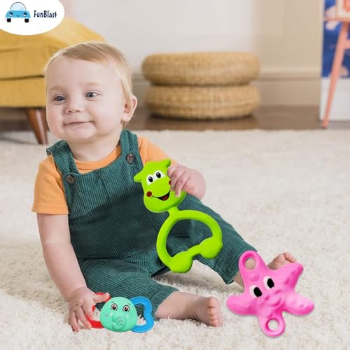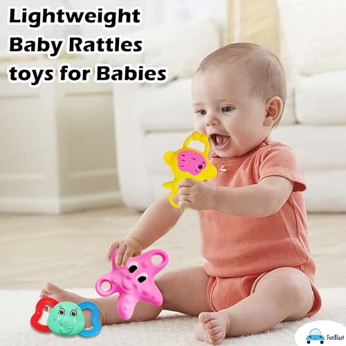 Babies Toys for 6-12 Months- Most of infant rattle toys make fun sound when the baby shakes the rattles, and candy color design can attract baby’s attention.