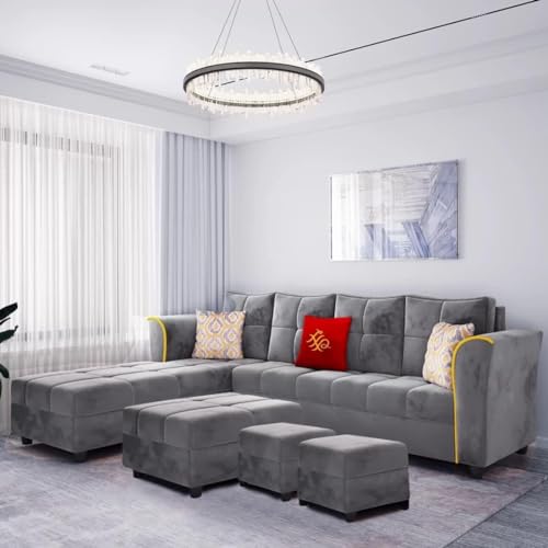 L Shape Sofa Set For Living Room, Fabric material Solid Wood & high density Supersoft Air Foam.; Primary Material: Solid Wood, Secondary Material: Foam, Upholstery Material: Fabric, Color: Grey, Assembly Required: DIY