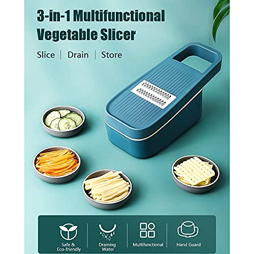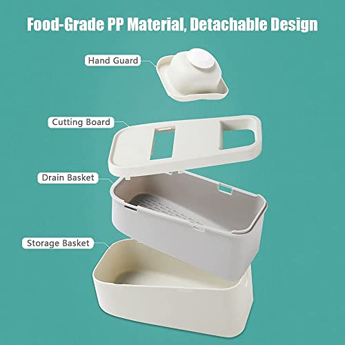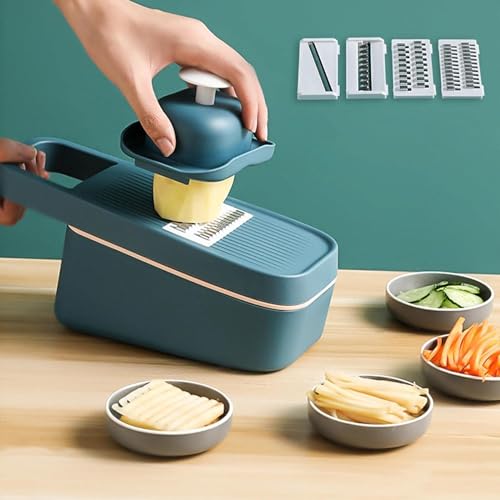 Furret Multifunction Mandoline Slicer – 4 Blade Vegetable Cutter for Potato, Carrot, Cucumber, Fruits – with Drain Basket, Hand Guard & Storage Box – Compact Kitchen Gadget