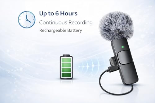 EXTENDED BATTERY LIFE: Enjoy up to 6 hours of continuous recording on a single charge, perfect for long video shoots, interviews, streaming sessions, and content creation without interruption