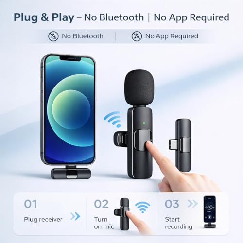 WIRELESS DUAL CONNECTIVITY: Furry K8 wireless lavalier microphone features Bluetooth and wireless connectivity with Type-C connector for seamless recording on Android smartphones and compatible devices