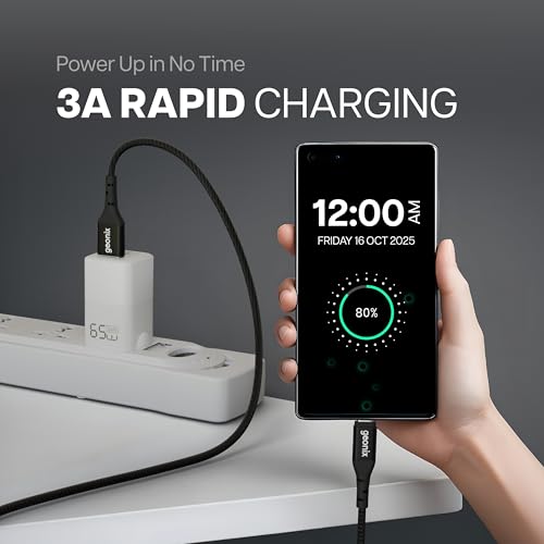 Unbreakable & Durable: Built to last, this USB to Type-C cable has a high-quality nylon woven design with aluminum shells, preventing wear and tear over time. Its tangle-free design helps with easy storage.