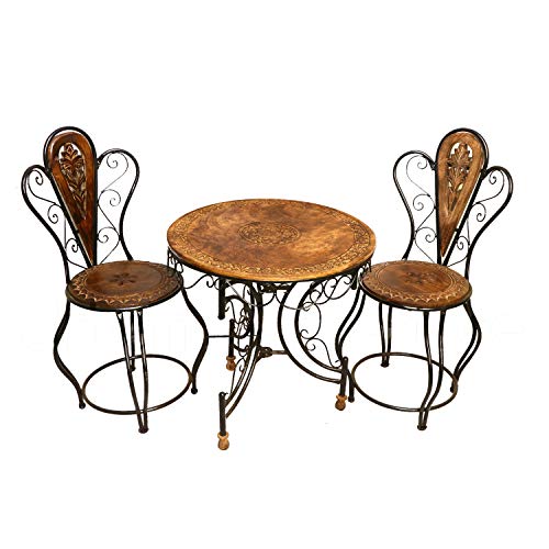 This patio chair set to Enhance & Decor your indoor/outdoor living space with Wood & Wrought Iron Style 3-Piece Patio Conversation Set. Heavy duty build quality metal frame and solid mango wood used.