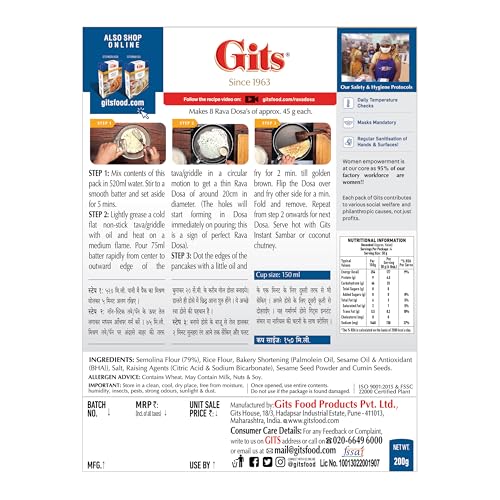 Gits Instant Rava Dosa Breakfast Mix, Makes 8 per Pack, Pure Veg, South Indian Recipe, 200g 12/03/2026 by Big Deals Saving Price: ₹72.00 - ₹66.00(as of Mar 13, 2026 02:33:48 UTC – Details) Rava Dosa Is Made From Suji/Rava/Semolina And Is Good For Health And Improves Digestion. Big Deals SavingDiscover unbeatable deals on top products at Big Deals Saving. Get the best discounts, offers, and savings every day. Shop smart, save big! Contattaci Sharing Is Caring: