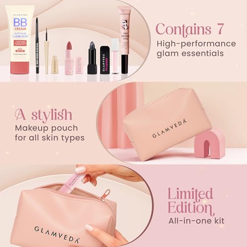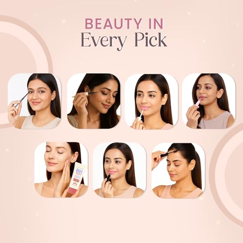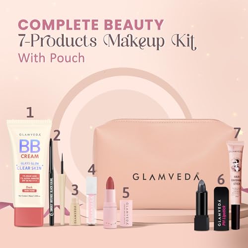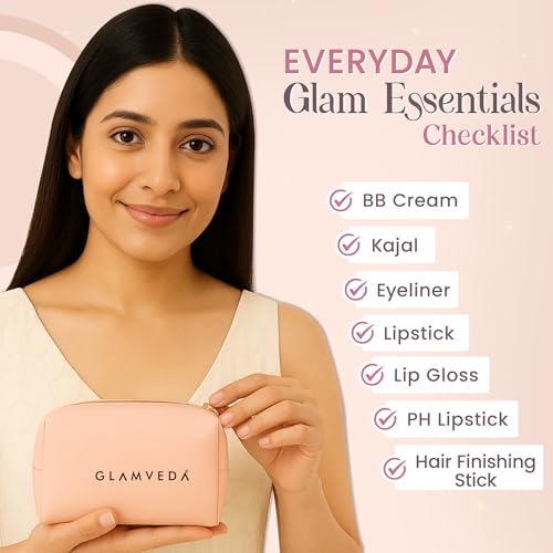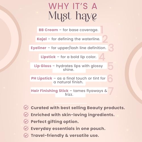 Complete beauty solution: Kit includes kajal, eyeliner, BB cream, pH colour‑changing lipstick, lip gloss, bullet lipstick, hair finishing stick and a handy pouch.