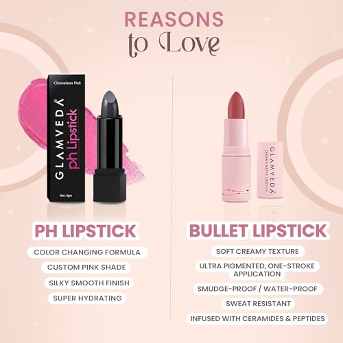 Versatile lip trio: Choose between a pH‑responsive lipstick that adapts to your lip tone, a classic bullet lipstick and a glossy finish for endless combinations.