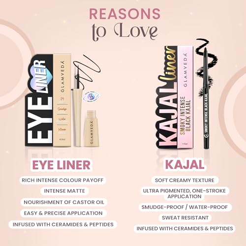 Eyes defined: Kajal and eyeliner provide deep, smudge‑proof colour for long‑lasting eye looks.