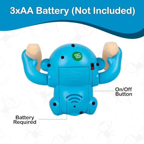TUMBLING MONKEY: The monkey with a banana is an attractive toy with vibrant colors, along with lights, sounds, and tumbling movements. It will make your baby want to crawl and walk while having a blast playing with it.