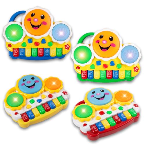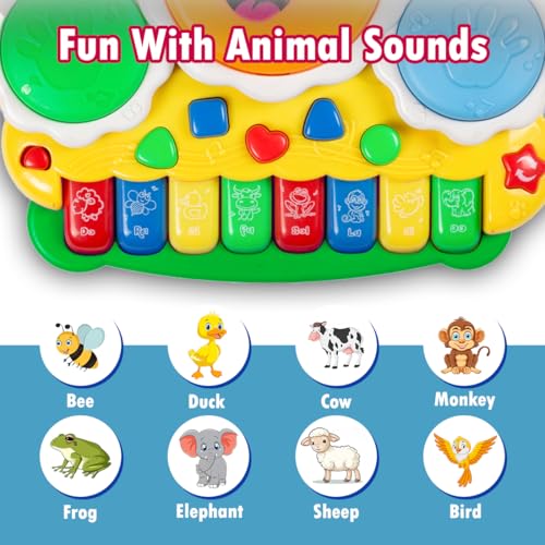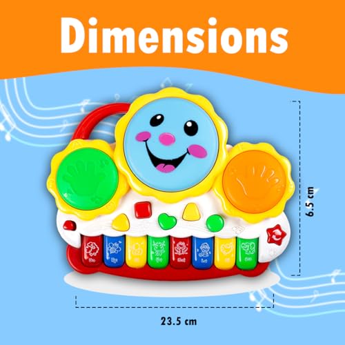 GOOYO musical drum piano keyboard toy an excellent introduction to music, with this easy-to-use drum and piano toddler toy. The Round-Edging Design ensures that babies and toddlers will not be harmed by hard edges. . It helps to enhance creativity, musical potential, and develop their character and personality. Our baby piano toy is equipped with cartoon digital signs and bright colors which attractive for babies. Music toys are an essential part of well-rounded play.