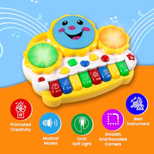 Multi-functional Musical Toy: This musical toy has 2 instruments includes piano and drum, which makes different sounds and the drum can also emit soft light. It’s a perfect toy for explorative toddlers.