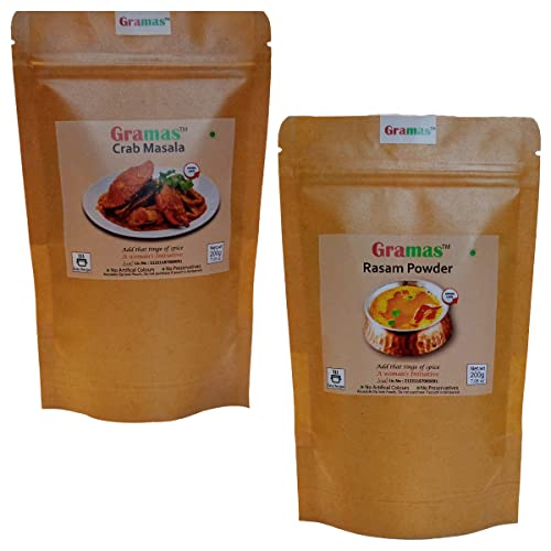 Explore a wide range of Crab Masala Powder & Rasam Powder from Gramas Available on Amazon. Gramas natural spice products will add the flavor to your food that everyone will love. Natural spices Ground to fine powder with flavor lock process. Gramas crab masala is a aromatic mix of ground spices thast will enhance taste & flovours of your crab masala (Tamilnad style). Rasam Powder is a blend of aromatic spices & herbs that were traditionally used for making classical rasam. Gramas spices make your food healthy and delicious, no chemicals and preservatives used only natural ingredients.