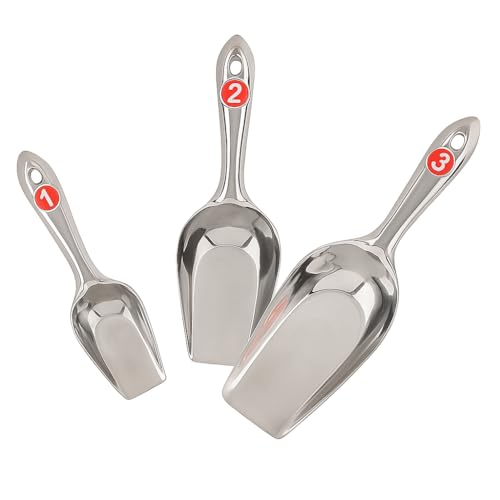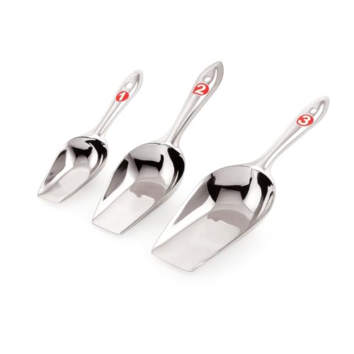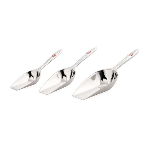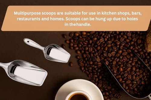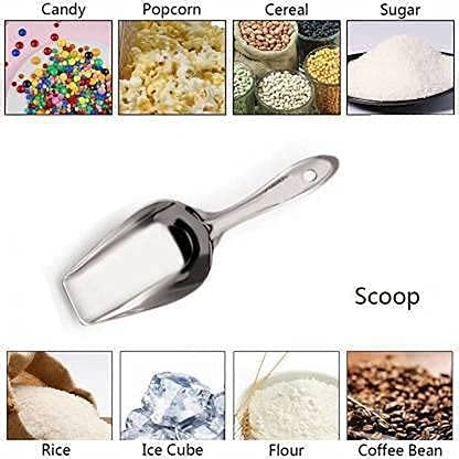 Versatile Usagec : Ideal for scooping dry foods such as flour, sugar, rice, pulses, spices, candy, popcorn, and coffee beans. Wide scoop body with slightly curved head for easy handling.