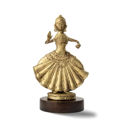 The Dokra Danseuse strikes a pose in the traditional dance form of Kuchipudi. The flailing costume highlights her sense of passion and grace in her stance. The Danseuse is carved using the ancient lost wax technique by artisans of West Bengal. It is styled with a complimentary pedestal, enhancing the presence. Bring home this piece of tradition to your home.