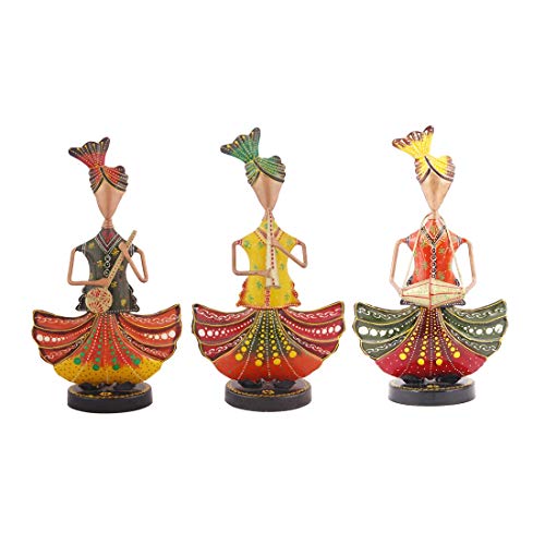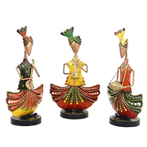 Handicrafts Paradise Tribal Rajasthani Musicians in Iron Handmade Decorative Gift Item Showpiece for Home Décor, Multicolour