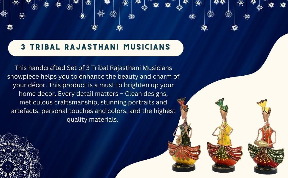 This handcrafted Set of 3 Tribal Rajasthani Musicians showpiece helps you to enhance the beauty and charm of your décor.