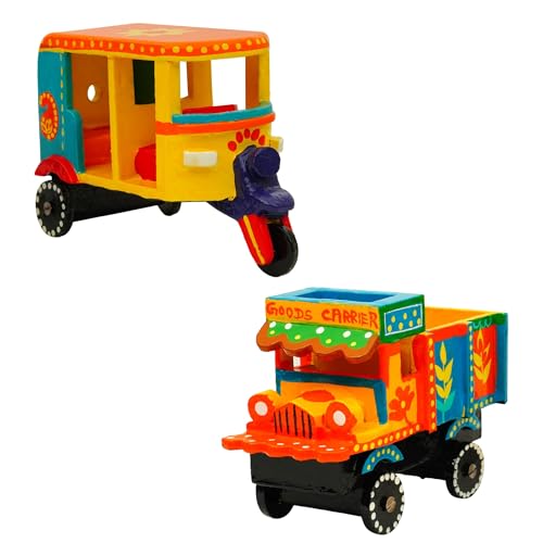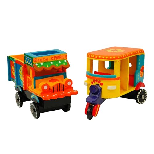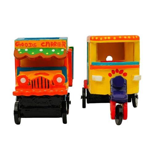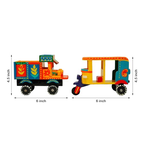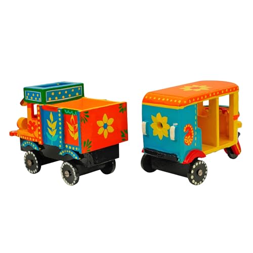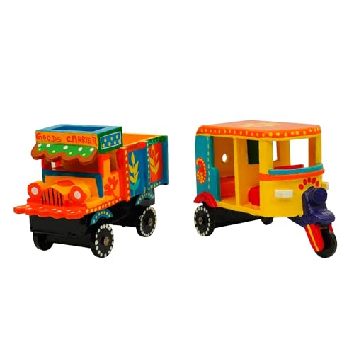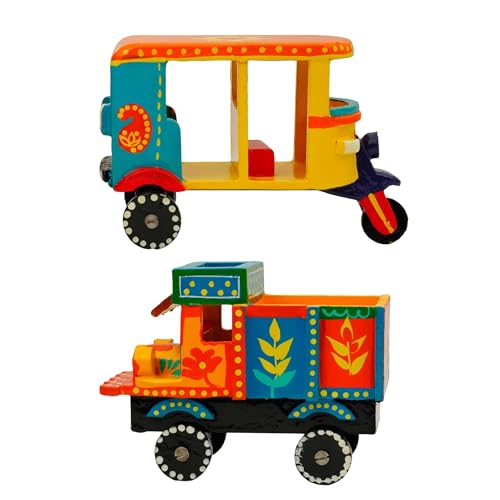 Perfect Size for Play & Décor: With a size of approx. 6 x 4.5 inches, the auto rickshaw and goods truck fit perfectly in little hands for imaginative play or on shelves as ethnic decor.