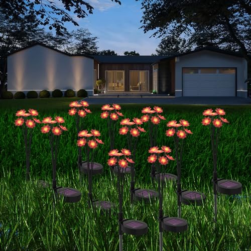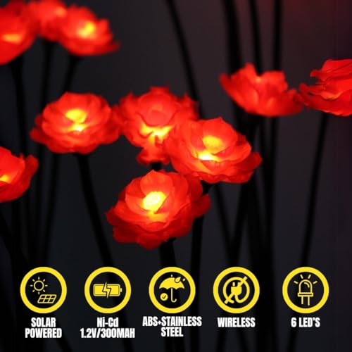 [BEAUTIFUL FLORAL DESIGN]: Transform your outdoor space with our solar outdoor garden decorative flower lamp. It provides a gentle, warm glow emitted by energy-efficient 6 warm white LED bulbs and a blossoming flower design that adds a delightful focal point to your garden. Perfect for garden and balcony decoration.