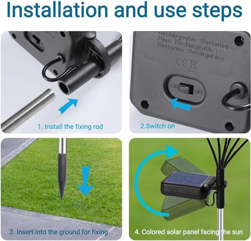 [EASY INSTALLATION]: Enhance your garden’s aesthetic with our solar-powered outdoor decorative flower lamp. Waterproof and easy to install, does not require a switch or even cables. Simply stake the flower lamp into the ground in a sunny spot, allowing the solar panel to absorb sunlight and power the enchanting illumination. It’s the perfect addition to any outdoor space.