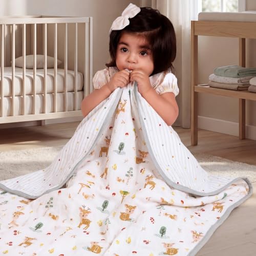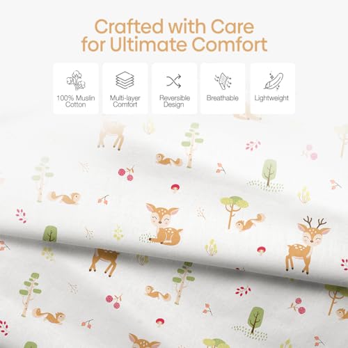 haus & kinder 100% Cotton Reversible Muslin Blanket for Newborn Baby Boy & Girl | Triple Layer Baby Blanket, Soft, Lightweight, Breathable | 0-3 Years | 120×120 cm – Whimsical Woodland