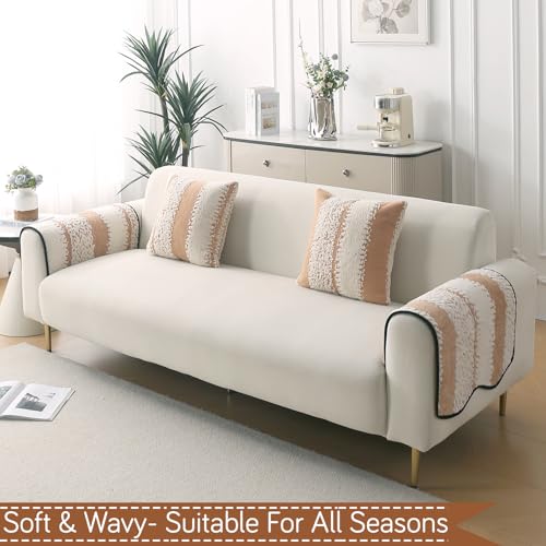 Sofa Armrest Covers – Sold in pairs, crafted from luxury wavy plush fabric with anti-slip backing for added stability and comfort