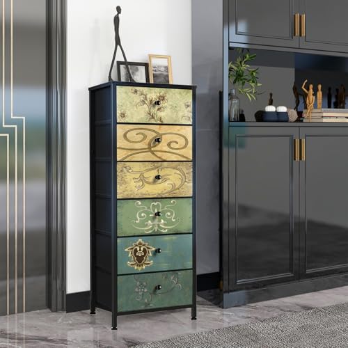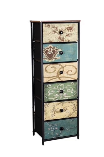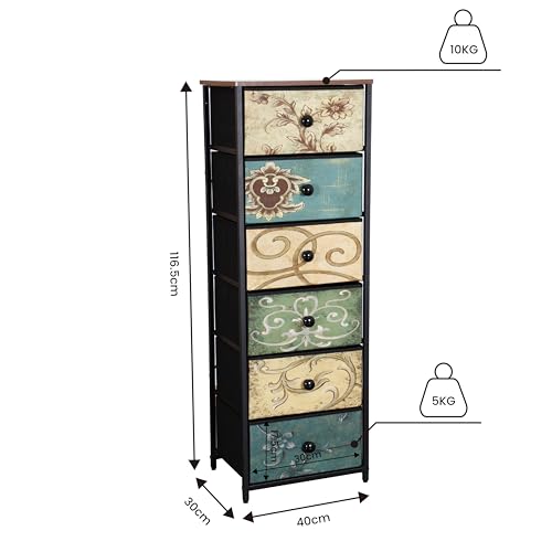 Multi-Compartment Design: With six fabric drawers adorned with floral patterns, it offers ample space for organising your belongings.