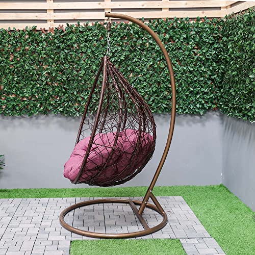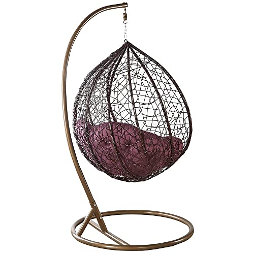 STAND AND CUSHIONS ARE INCLUDED: Never worry about maintenance with this hanging chair patio set. The Ratan Wicker and iron swing seater is protected with finishing to resist the suns heat and rain. Our cushions are tough, yet soft with cushioned seating and Ratan Wicker material, your guests can sit back and relax with luxury accommodation. Our cushions are made with moshi cloth and poly fillers for the perfect snug. The chair takes minimal area cover.