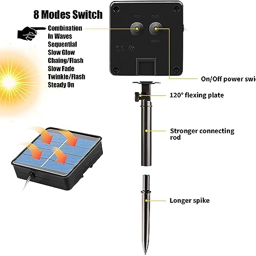 This Solar Led String Light offers 8 lighting modes, including combination, wave, sequential, slow glow, chasing/flash, slow fade, twinkle/flash, and steady on. Customize your lighting experience and the 200 Led bulb design emits warm light glow to your outdoor Space along side garden solar light