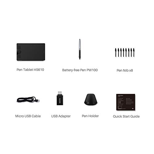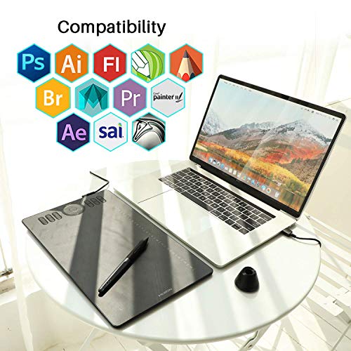 Compatibility: HS610 is compatible with not only Windows 7 and above, macOS 10.12 and above, but also Android devices (OS 6.0 and above). It also supports online class and digital design in most programs like Adobe Photoshop, SAI, illustrator, corel draw, corel painter, sketchbook, OneNote and more.