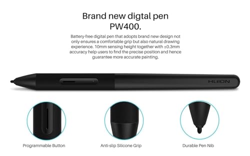 New Digital Pen PW400- Battery-free digital pen with 8192 levels of pressure sensitivity and ±60° tilt recognization helps to add shadings in a more dynamic way that adopts brand new design not only ensures a comfortable grip but also natural drawing experience. 10mm sensing height together with ±0.3mm accuracy help users to find the precise position and hence guarantee more accurate painting.