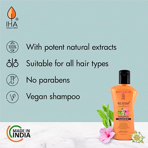 Made in India: IHA Biospume shampoo is a perfect blend of natural herbal ingredients with potent actives that makes it completely safe, toxin-free, Sulphate and Paraben free; entirely manufactured in India.