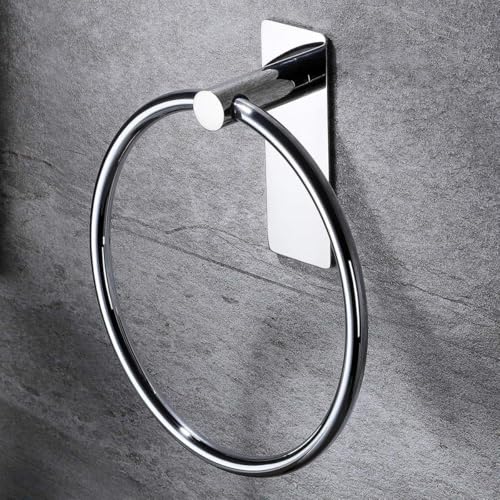 Modern Round Design & Easy Installation: This self-adhesive towel ring features a modern round design that complements various bathroom interiors. With no drilling required, installation is easy and mess-free. Just peel off the 3M adhesive backing and press onto a clean, dry surface.