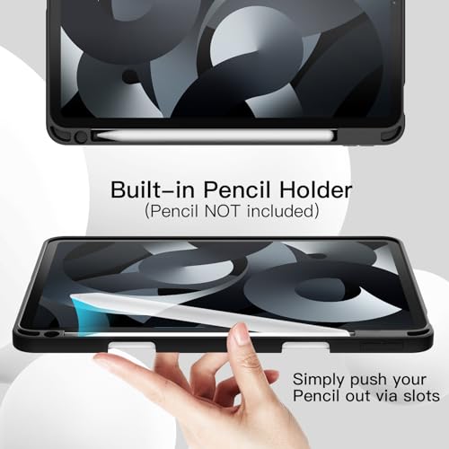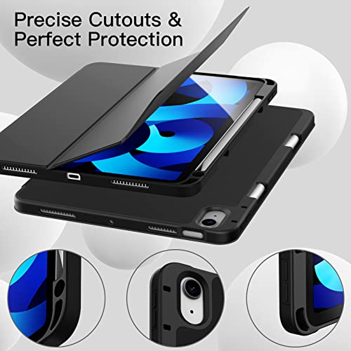 JETech Cover Case for iPad Air 11-Inch M4/M3/M2 (2026/2025/2024), iPad Air 5/4 (2022/2020 5th/4th Generation 10.9-Inch) with Pencil Holder, Slim Tablet Cover with Soft TPU Back (Black)
