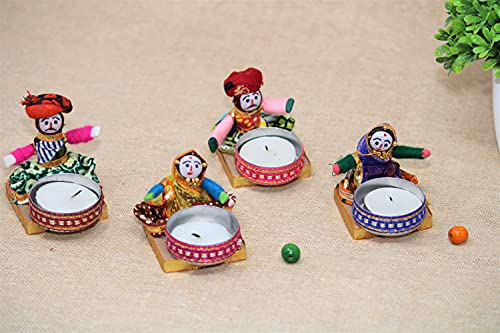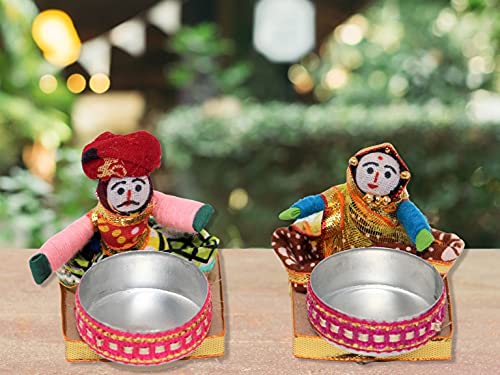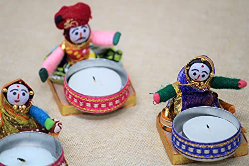 Handmade Recycled Material Rajasthani Dolls Puppet Tealight Candle Holders