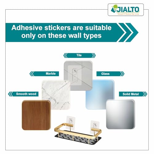 𝐒𝐞𝐥𝐟-𝐀𝐝𝐡𝐞𝐬𝐢𝐯𝐞 𝐈𝐧𝐬𝐭𝐚𝐥𝐥𝐚𝐭𝐢𝐨𝐧 : Featuring a self adhesive bathroom shelf, this product eliminates the need for drilling. This bathroom organiser without drill is easy to install on any smooth wall, providing a sturdy bathroom rack that seamlessly blends with your existing bathroom accessories set.