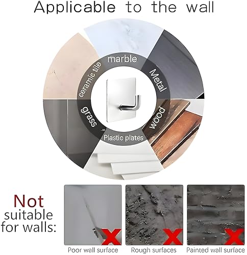 Please make sure the surface is clean and dry, free from dust, water and oil. Please confirm whether the adhesive hooks sticks firmly before hanging heavier objects or valuable items. The sticky hooks is not recommended for wallpaper wall, painted wall and drywall to avoid damaging as its strong adhesion, please make sure the position before use if you need.