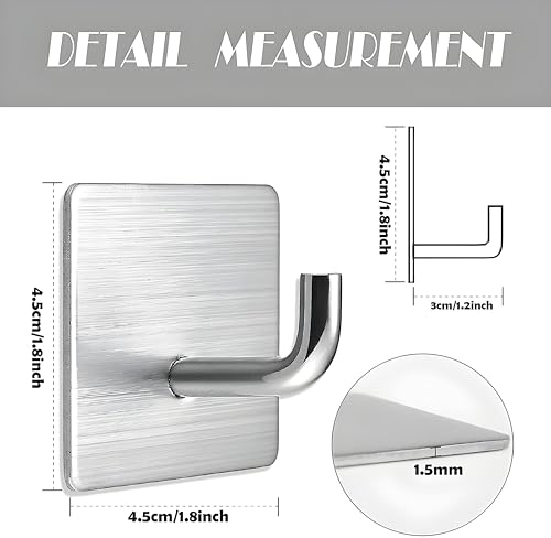 Specification Material: Stainless Steel Color: Silver Shape: Square Length: 1.7 inch Width: 1.7 inch Package Include: 4* Silver Adhesive Hooks