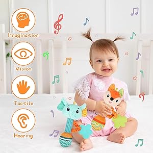 [Soft Plush Material] – This soft Musical Toy for kids 6-12 months have colorful design and interactive animal and textured shape. Soft toy for girls is gentle on delicate baby skin, made from high-quality, non-toxic and BPA-free materials.