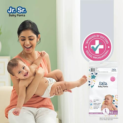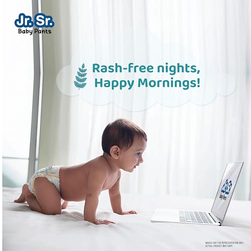 Clinically proven hypoallergenic for delicate skin: Crafted with care, our diapers offer a gentle solution for sensitive babies. Rest easy knowing Jr.Sr. provides a secure fit and unmatched comfort, ensuring your little one stays happy and irritation-free. Trust Jr.Sr. for a soothing diapering experience like no other.