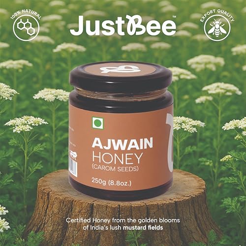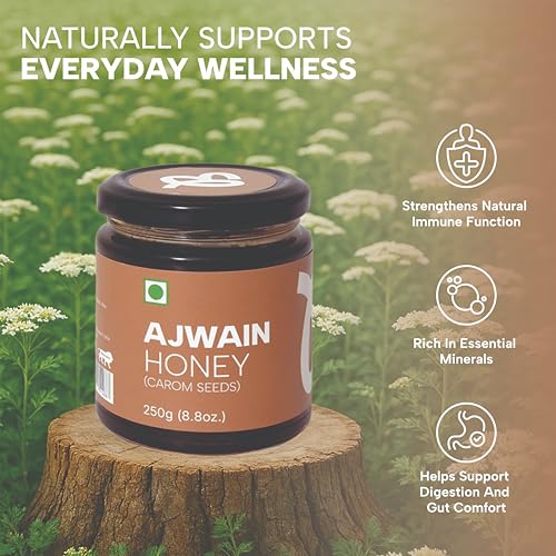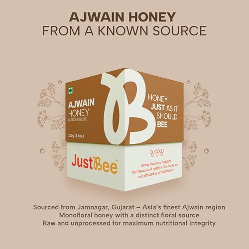 Single-Origin & Monofloral – Sourced from Ajwain blossoms in Jamnagar, Gujarat — this pure ajwain honey carries a distinct floral-spiced note and traceable single-source purity.