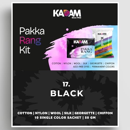 VIBRANT BLACK COLOR: Restore and enhance the color of your jeans and clothes with Kadam Pakka Rang black dye, providing a rich and permanent finish for all fabrics.