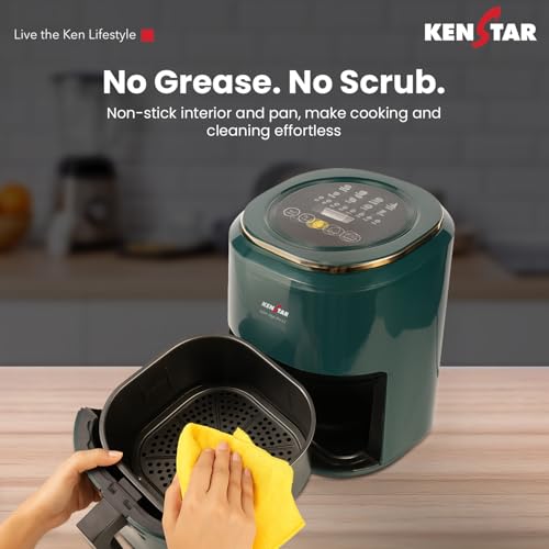 Kenstar Aster Pro Digi 5.5L Air Fryer is designed for healthy oil-free cooking. It features a digital touch control panel, 8 pre-set menus, adjustable temperature (up to 200°C), and a 60-minute timer with auto shut-off. With its non-stick basket and compact design, it is easy to clean and perfect for daily use.