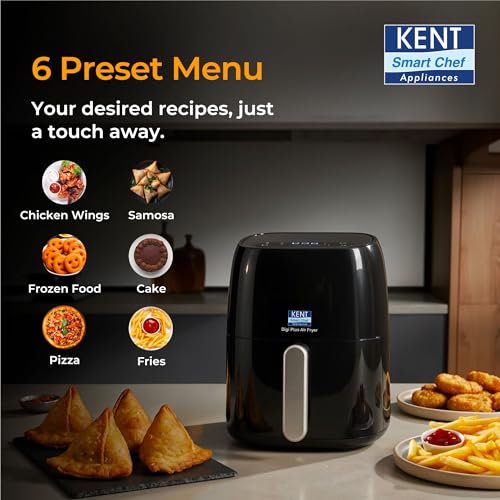 Minimal Oil in Fried Food: With the KENT Digi Plus Air Fryer, you can indulge in mouth watering fried delicacies like samosas, fries, frozen meals, pizza, and kebabs without having to worry about consuming too much fat. While maintaining the same crispiness, taste, and texture of traditional deep-frying, this gadget uses up to 80% less oil.