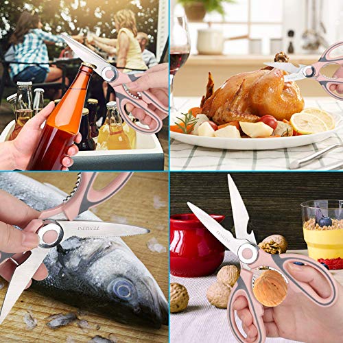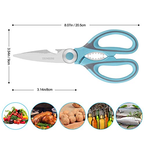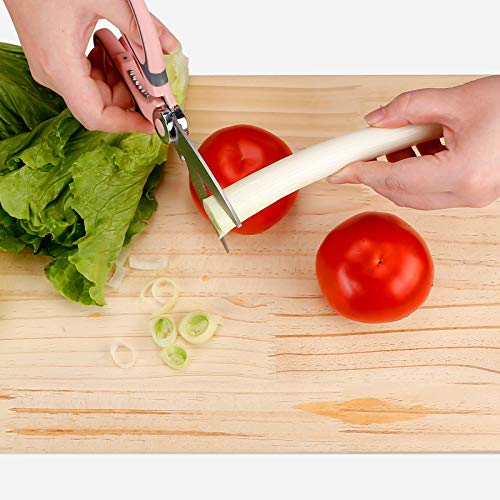 【EXTENSIVE ADDITIONAL FEATURES】The multifunctional kitchen shears can also be used as nut crackers, bottle openers and scale scrapers, or used to cut cardboard, paper and hard plastic for product packaging, trim the peduncle and so on.