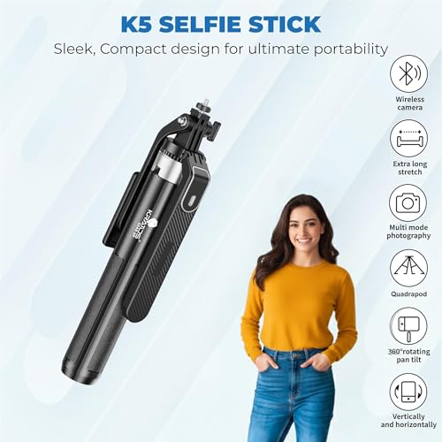 65-Inch Ultra Long Selfie stick for mobile: Capture stunning wide-angle shots, group photos, and unique perspectives with a Kratos selfie stick tripod stand extended up to 65-inch length, perfect for vlogging, selfies, and outdoor adventures.