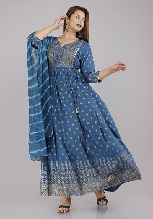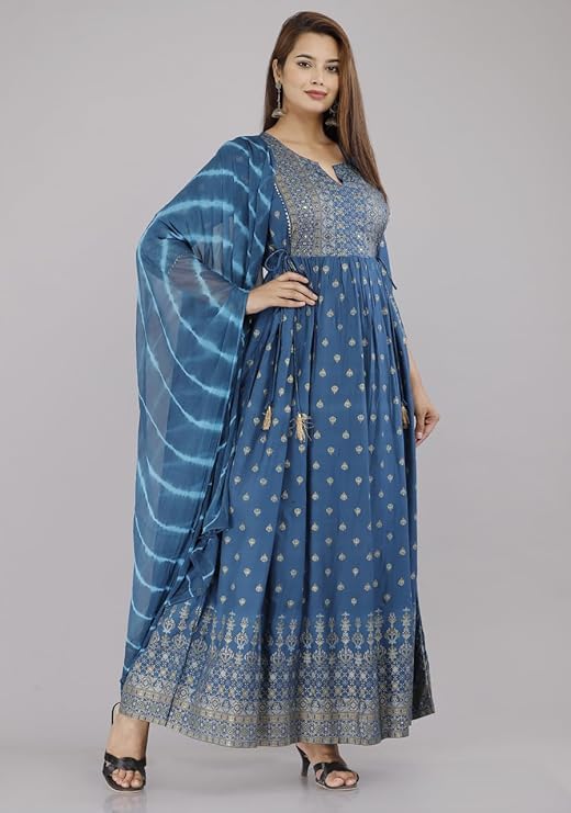 KRITHVIK Women’s Long Anarkali Kurta with Dupatta | Elegant Ethnic Wear for Girls & Women | Perfect for Festive & Casual Occasions