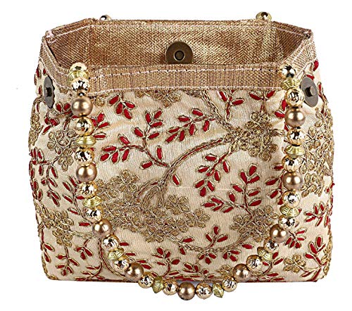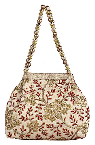 Kuber Industries Polyester Embroidered Woman Potli Bag, Cream – CTKTC31394